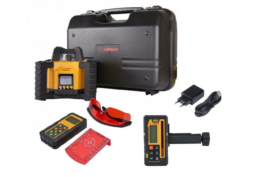 Lamigo Spin 400 to w pełni automatyczny laser rotacyjny z czytelnym ekranem LCD, przeznaczony do pracy w poziomie i pionie. Umożliwia szybkie i precyzyjne wyznaczanie poziomów, pionów, kątów prostych oraz spadków – również w trybie automatycznym.